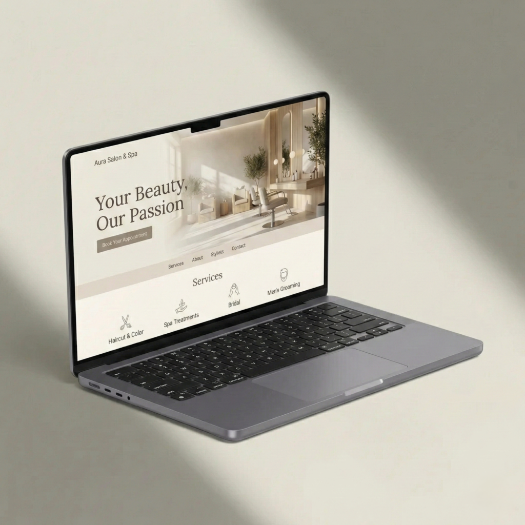 An elegant salon can bring in more customers with online booking and a service showcase.